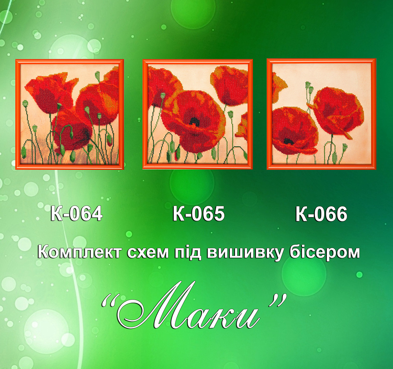 Схема для вишивки бісером Маки К-064-066 (габардин)