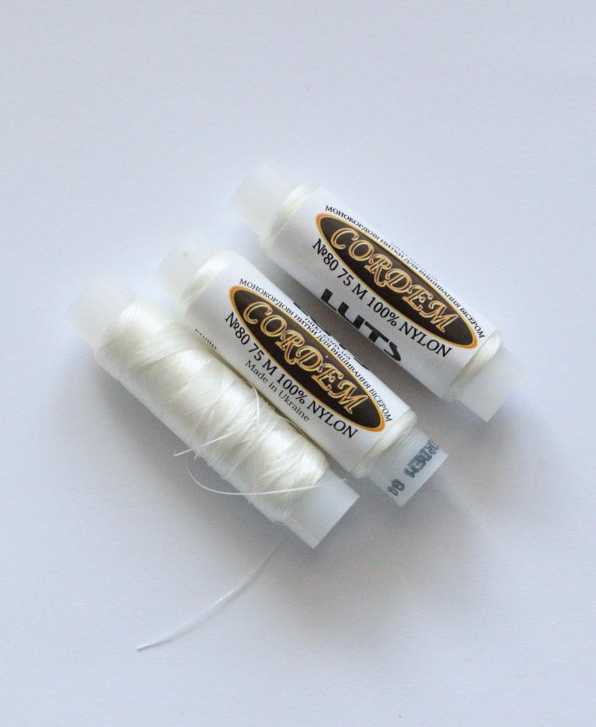 Бісерна нитка Кордем українського виробництва. Високоміцні поліамідні нитки зі спеціальною обробкою, що скріплює структуру нитки. Кінчик не розпускається. Нитка плоска.